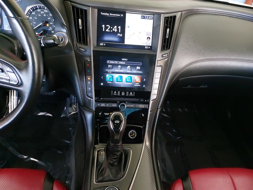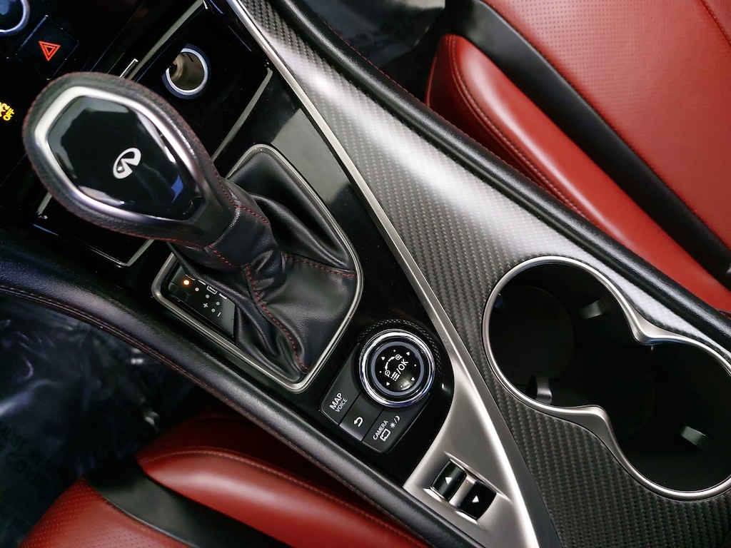 Local Trade, Nonsmoker, Cargo package, Exterior lighting package, Apple CarPlay/Android Auto, Carbon Fiber Rear Decklid Spoiler, Navigation system: INFINITI InTouch Navigation, 13 Speakers, 4-Wheel Disc Brakes, ABS brakes, Adaptive suspension, Air Conditioning, Alloy wheels, AM/FM radio: SiriusXM, Auto High-beam Headlights, Auto tilt-away steering wheel, Auto-dimming door mirrors, Auto-dimming Rear-View mirror, Automatic temperature control, Blind Spot Warning, Brake assist, Bumpers: body-color, Cargo Net, Cargo Package, Carpeted Trunk Mat, CD player, Compass, Delay-off headlights, Driver door bin, Driver vanity mirror, Dual front impact airbags, Dual front side impact airbags, Electronic Stability Control, Emergency communication system: INFINITI Connection, First Aid Kit, Four wheel independent suspension, Front anti-roll bar, Front Bucket Seats, Front Center Armrest, Front dual zone A/C, Front fog lights, Front reading lights, Fully automatic headlights, Garage door transmitter: HomeLink, Heated door mirrors, Heated Front Bucket Seats, Heated front seats, Heated steering wheel, Illuminated entry, Illuminated Kick Plates, INFINITI Welcome Lighting, Leather Shift Knob, Leather steering wheel, Literature Kit, Low tire pressure warning, Memory seat, Occupant sensing airbag, Outside temperature display, Overhead airbag, Overhead console, Panic alarm, Passenger door bin, Passenger vanity mirror, Power door mirrors, Power driver seat, Power moonroof, Power passenger seat, Power steering, Power windows, Radio data system, Radio: INFINITI InTouch w/AM/FM/HD/CD/Navigation, Rain sensing wipers, Rear anti-roll bar, Rear window defroster, Remote keyless entry, Security system, Semi-Aniline Leather-Appointed Seating Surfaces, Speed control, Speed-sensing steering, Speed-Sensitive Wipers, Steering wheel memory, Steering wheel mounted audio controls, Tachometer, Telescoping steering wheel, Tilt steering wheel, Traction control, Trip computer, Turn signal indicator mirrors, Variably intermittent wipers, Wheels: 20" Staggered Aluminum-Alloy Sport, Apple CarPlay/Android Auto, Carbon Fiber Rear Decklid Spoiler, Navigation system: INFINITI InTouch Navigation. Red Sport 400 2D Coupe RWD Clean CARFAX. CARFAX One-Owner.