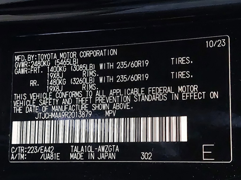 - Rear tires: 235/60VR19.0