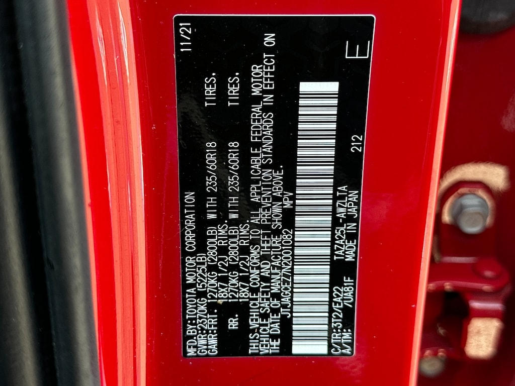 - Front tires: 235/60HR18.0