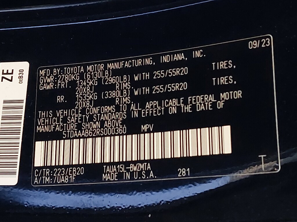 - Rear tires: 255/55VR20.0