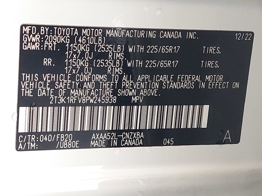 - Front tires: 225/65HR17.0